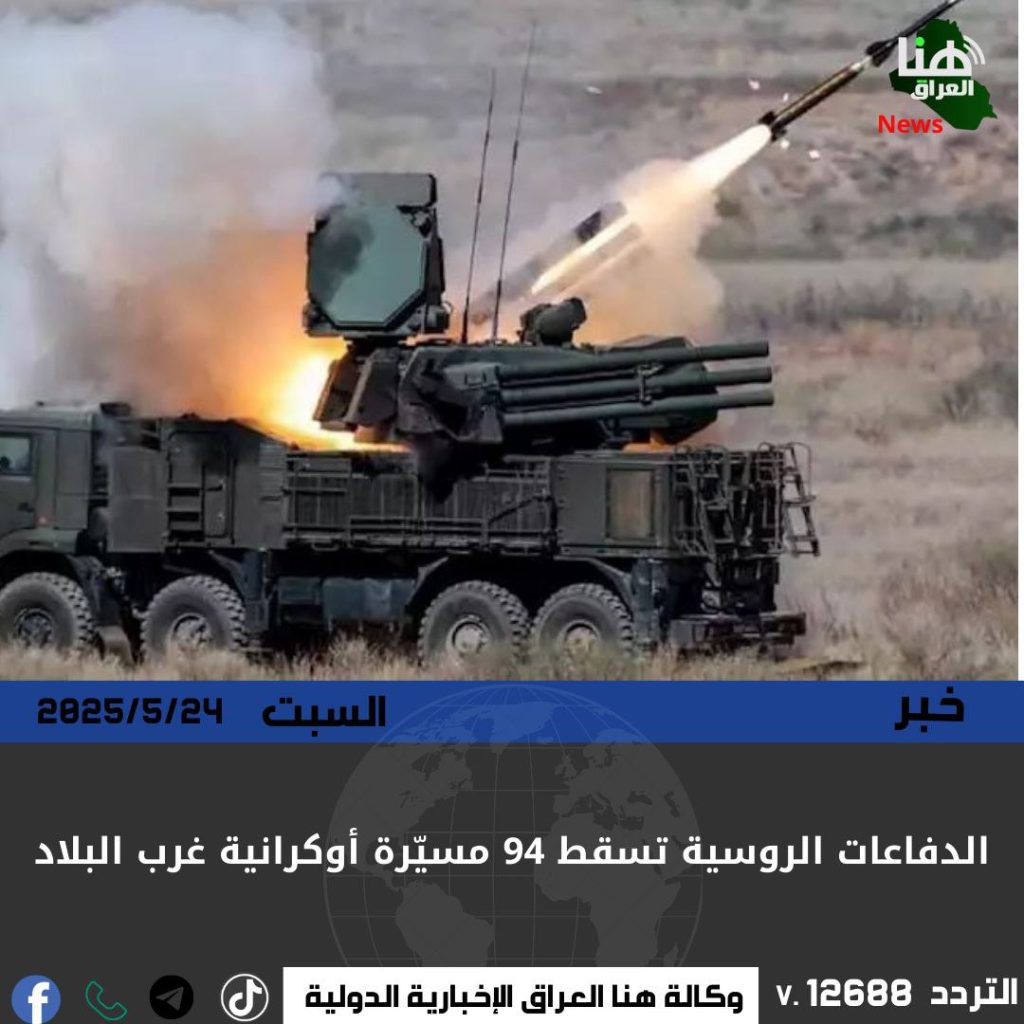أعلنت وزارة الدفاع الروسية، اليوم السبت، أن قوات الدفاع الجوي أسقطت 94 طائرة مسيّرة أوكرانية فوق مناطق مختلفة من الجزء الغربي للبلاد خلال الساعات الـ24 الماضية.