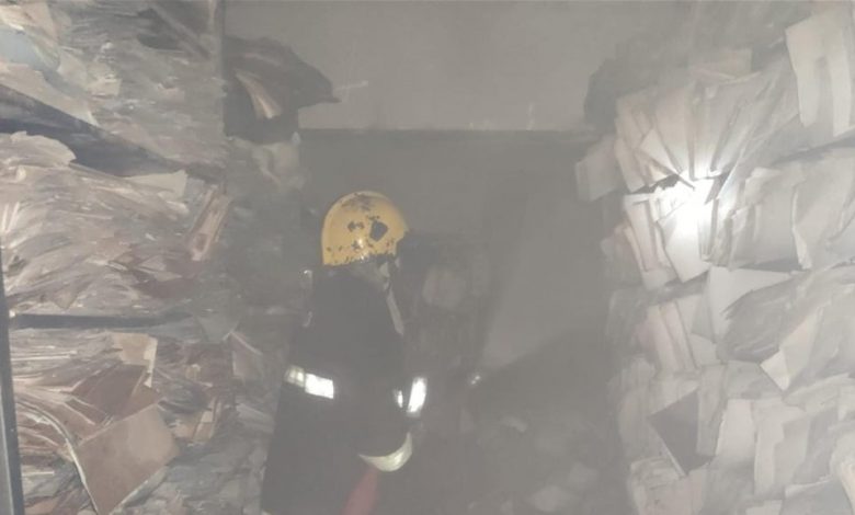 وأضافت: “حيث استنفرت مديرية الدفاع المدني ودفعت بـ 7 فرق إطفاء تخصصية إضافة آخرى سانده من حوضيات لتحكم سيطرتها الكاملة بوقت قياسي وتقلل الضرر داخل مخزن الأضابير وتنقذ ما يقارب 97% من نسبة الخزين “.