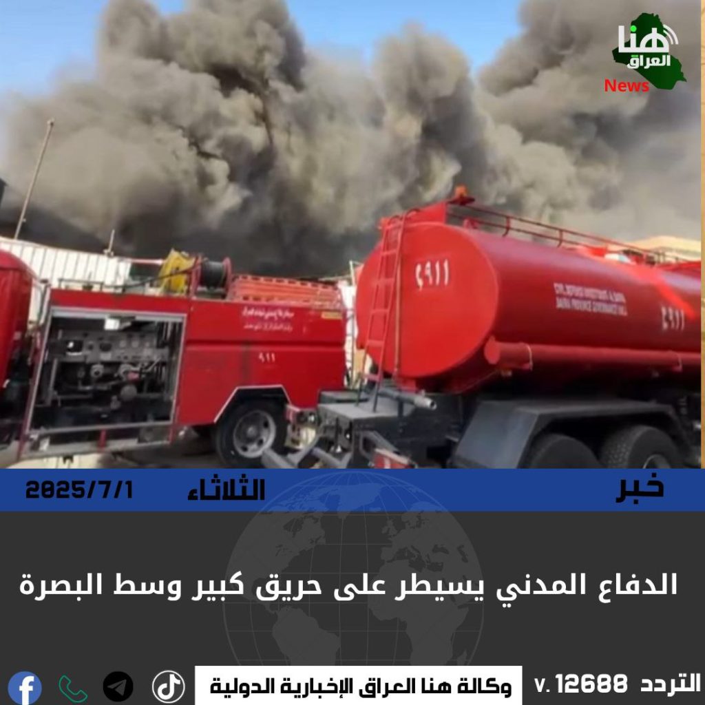 تمكنت فرق الدفاع المدني من إخماد حريق اندلع داخل أربعة مخازن تجارية للمواد الغذائية وسط محافظة البصرة.