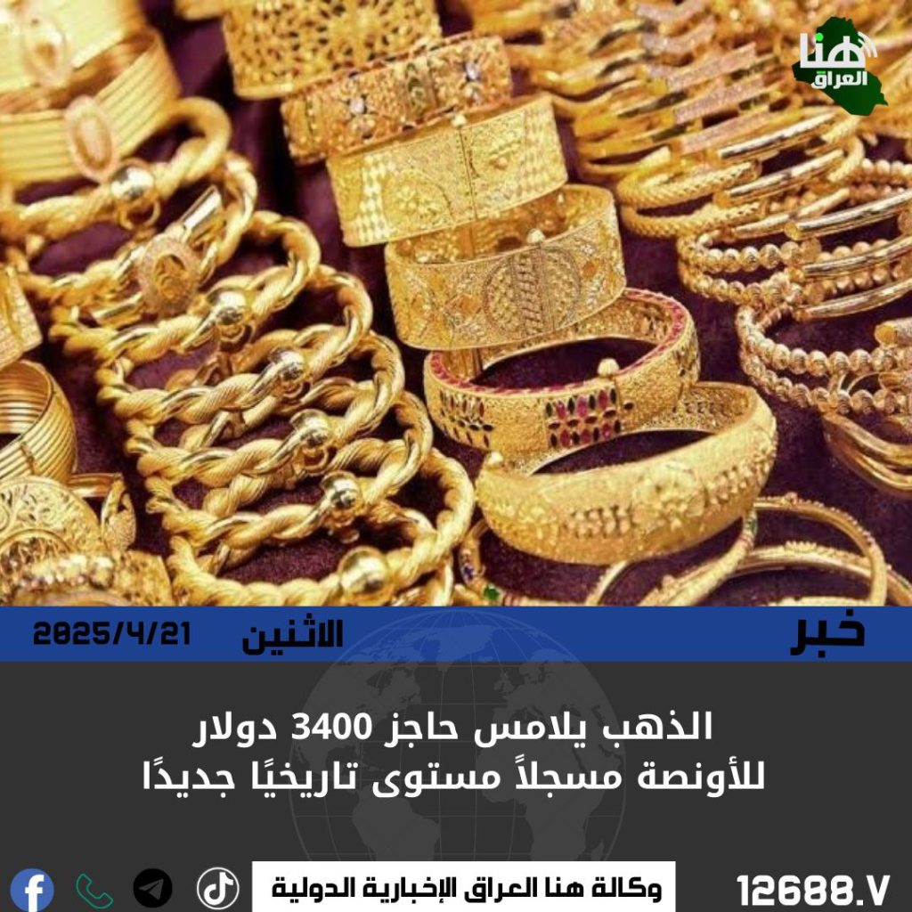 الذهب يلامس حاجز 3400 دولار للأونصة مسجلاً مستوى تاريخيًا جديدًا