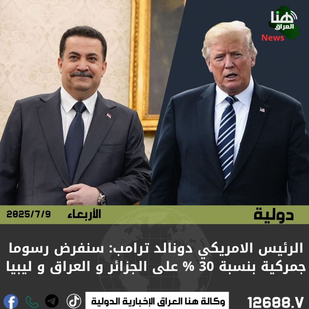 الرئيسية/اقتصاد/الرئيس الامريكي دونالد ترامب: سنفرض رسوما جمركية بنسبة 30 % على الجزائر و العراق و ليبيا اقتصاددوليسياسةمحلي الرئيس الامريكي دونالد ترامب: سنفرض رسوما جمركية بنسبة 30 % على الجزائر و العراق و ليبيا شاركها فيسبوك X لينكدإن Tumblr بينتيريست Reddit VKontakte Odnoklassniki Pocket مشاركة عبر البريد طباعة
