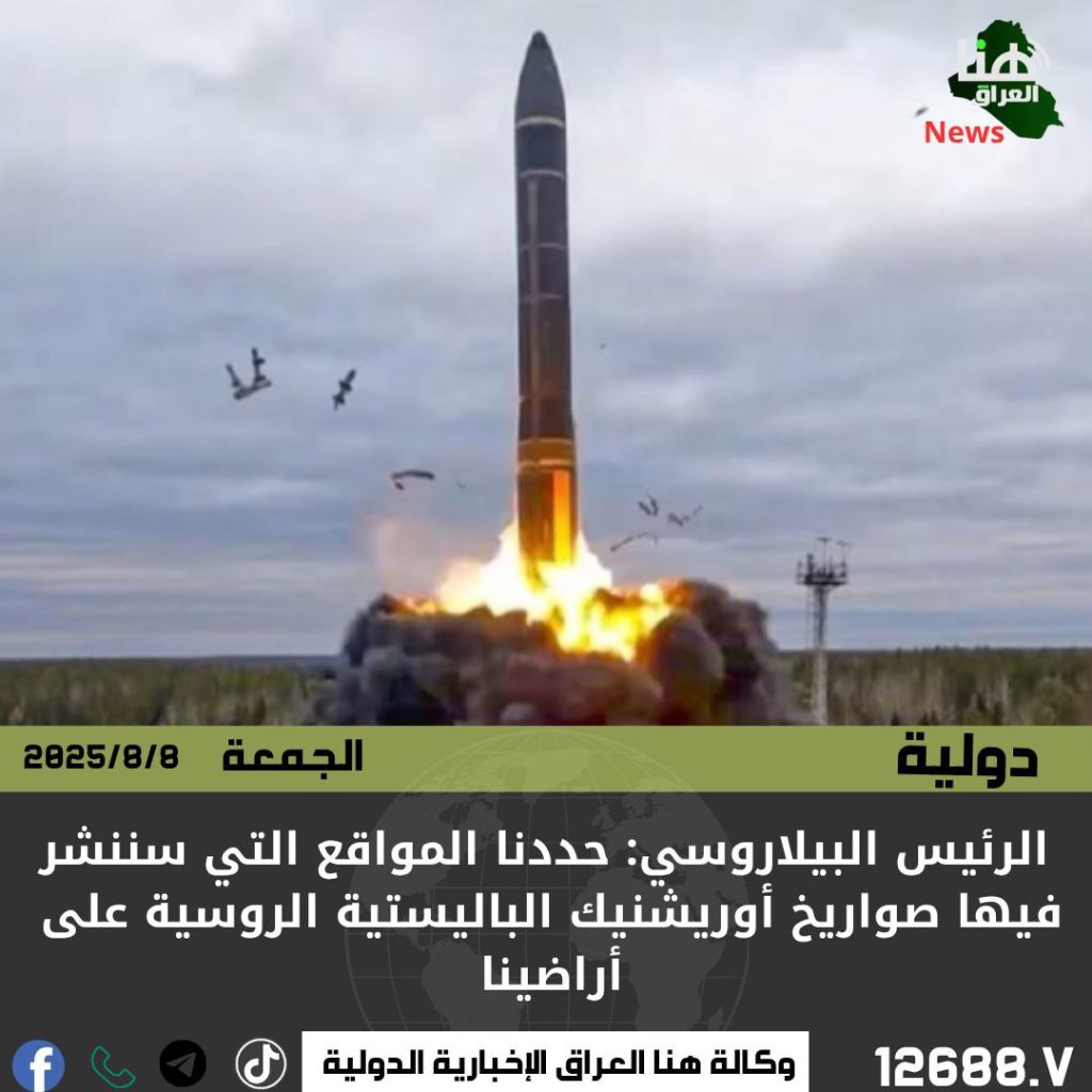 الرئيسية/امن/الرئيس البيلاروسي: حددنا المواقع التي سننشر فيها صواريخ أوريشنيك الباليستية الروسية على أراضينا امندولي الرئيس البيلاروسي: حددنا المواقع التي سننشر فيها صواريخ أوريشنيك الباليستية الروسية على أراضينا شاركها فيسبوك X لينكدإن Tumblr بينتيريست Reddit VKontakte Odnoklassniki Pocket مشاركة عبر البريد طباعة