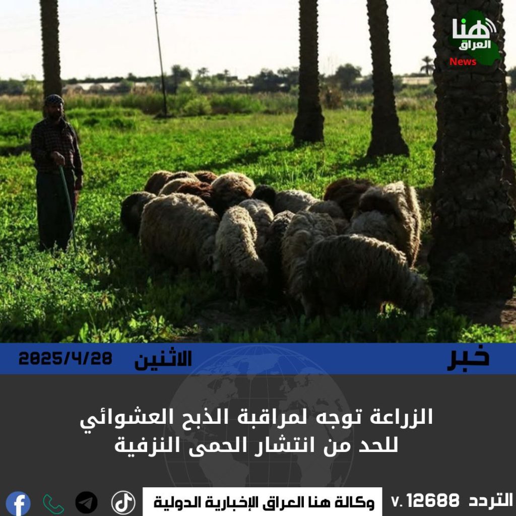 أصدرت وزارة الزراعة توجيهات بمتابعة ظاهرة الذبح العشوائي خارج المجازر الرسمية، وتشديد الرقابة على أسواق بيع الحيوانات، مع منع ظاهرة الرعي داخل المدن، وذلك في إطار جهودها للحد من انتشار الحمى النزفية.