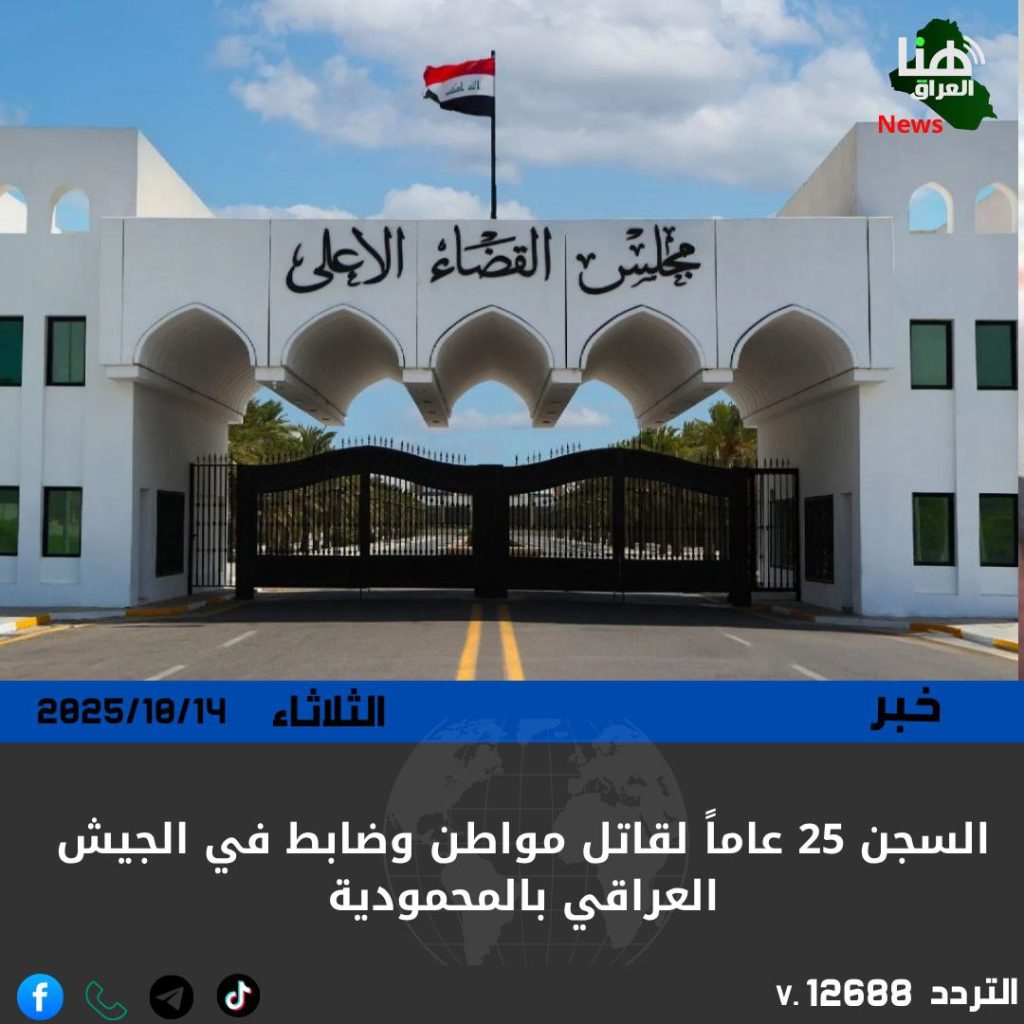 أعلنت قيادة شرطة بغداد الكرخ، صدور حكم قضائي بالسجن لمدة (25 عاماً) بحق مجرم ارتكب جريمة قتل أحد المواطنين وإصابة ضابط في الجيش العراقي أثناء أداء الواجب في قضاء المحمودية جنوبي العاصمة.