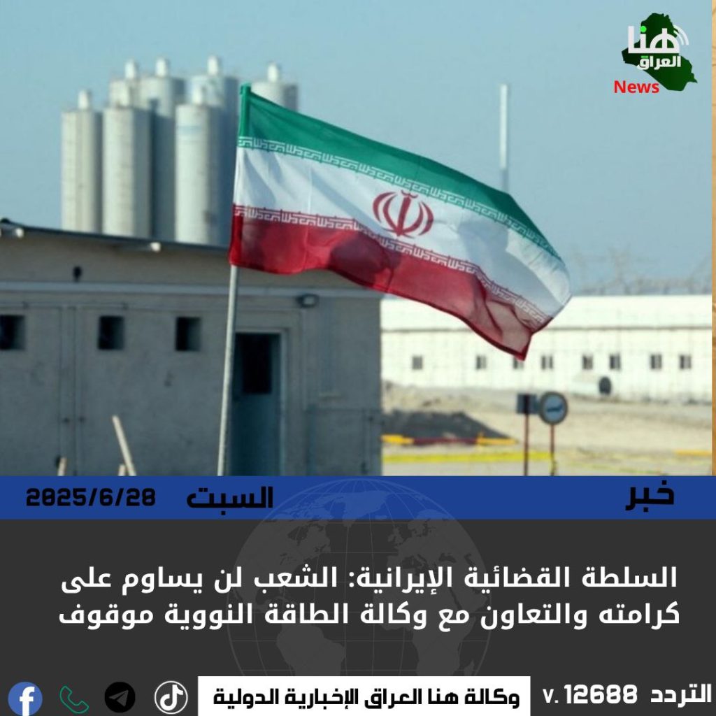 السلطة القضائية الإيرانية: الشعب لن يساوم على كرامته والتعاون مع وكالة الطاقة النووية موقوف
