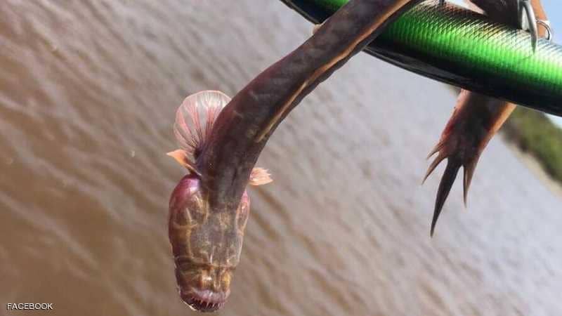 في حديقة كاكادو الوطنية شمالي أستراليا، اصطادت الصيادة تي هوكين سمكة غريبة تشبه الأنقليس، لكنها بلا عيون وفمها مليء بأسنان حادة تميل للون الأخضر البنفسجي، ما جعلها تبدو ككائن فضائي