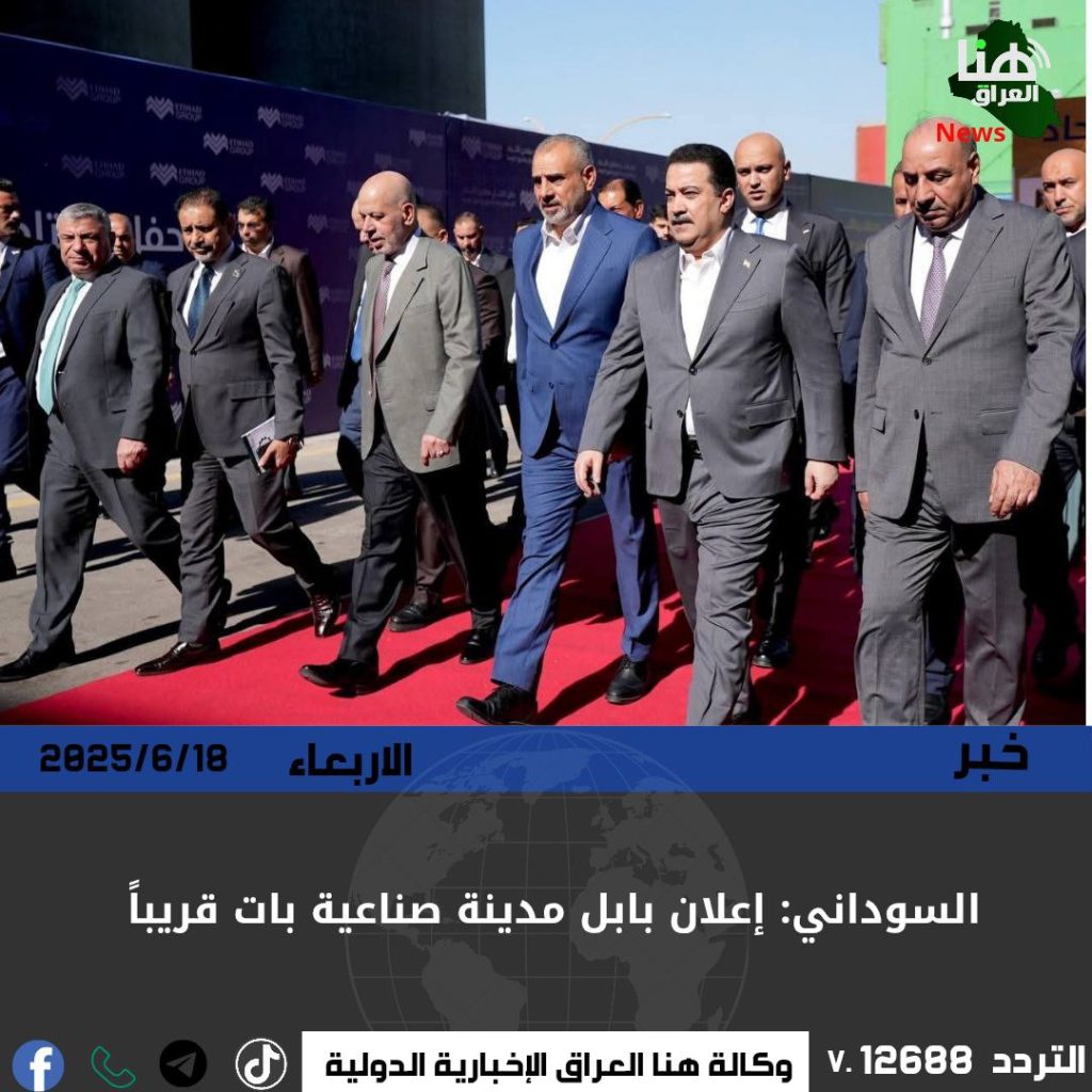 كشف رئيس مجلس الوزراء محمد شياع السوداني عن قرب إعلان محافظة بابل كمدينة صناعية، مؤكداً أن الخطوات الحكومية ماضية باتجاه إحياء الصناعات الوطنية وتنويع مصادر الدخل.