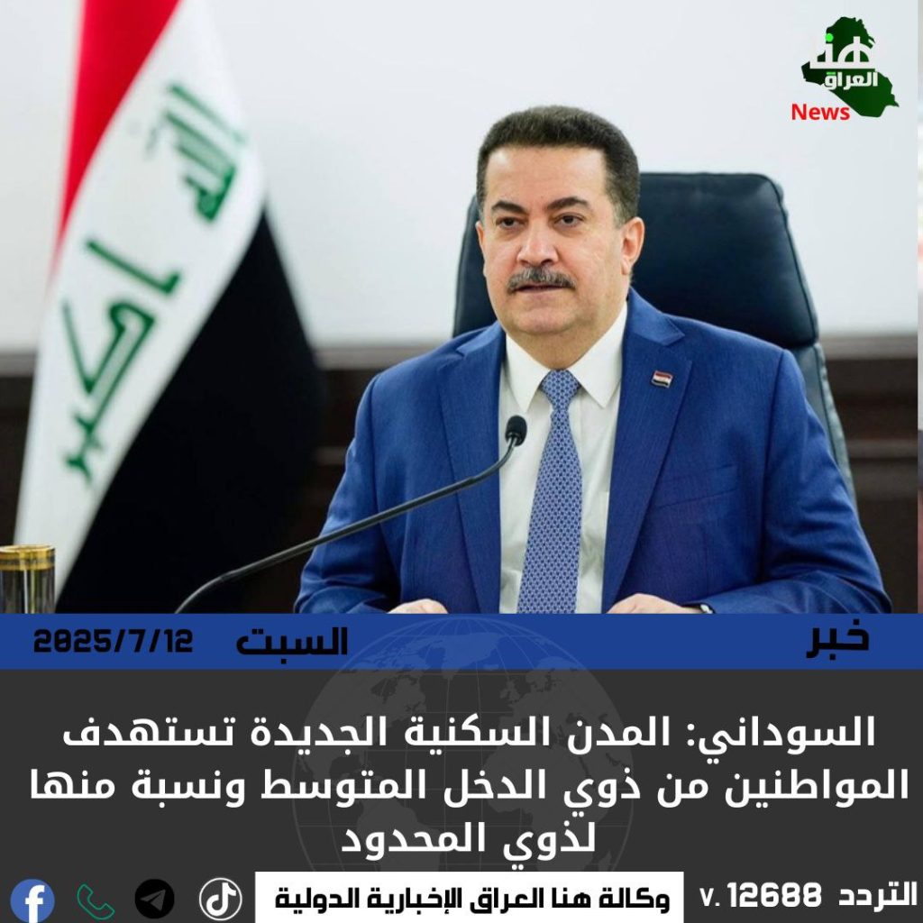 السوداني: المدن السكنية الجديدة تستهدف المواطنين من ذوي الدخل المتوسط ونسبة منها لذوي المحدود.