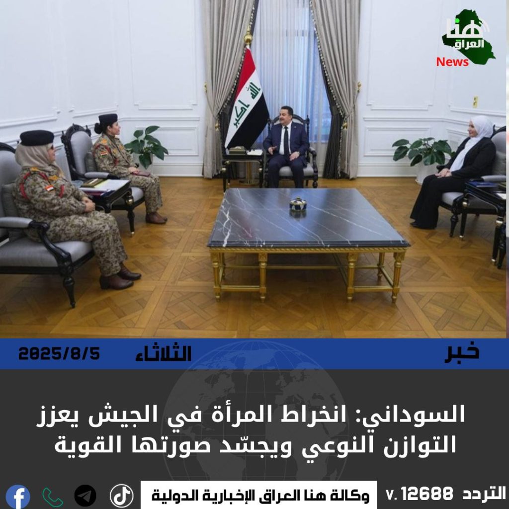 السوداني: انخراط المرأة في الجيش يعزز التوازن النوعي ويجسّد صورتها القوية والمخلصة للوطن