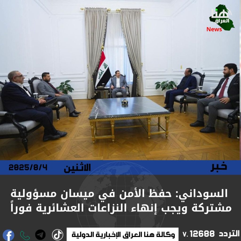 وأكد السوداني خلال اللقاء على أهمية حفظ الأمن في ميسان، مشدداً على ضرورة إنهاء النزاعات العشائرية والجرائم الجنائية التي تتكرر نتيجة ضعف أداء بعض الأجهزة الأمنية.