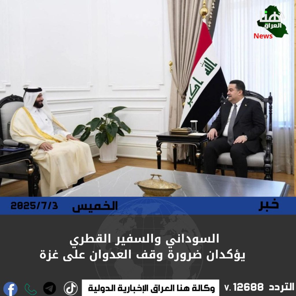 بحث رئيس الوزراء محمد شياع السوداني مع السفير القطري في بغداد تطورات الأوضاع في غزة، مؤكدين أهمية التوصل إلى وقف فوري لإطلاق النار.