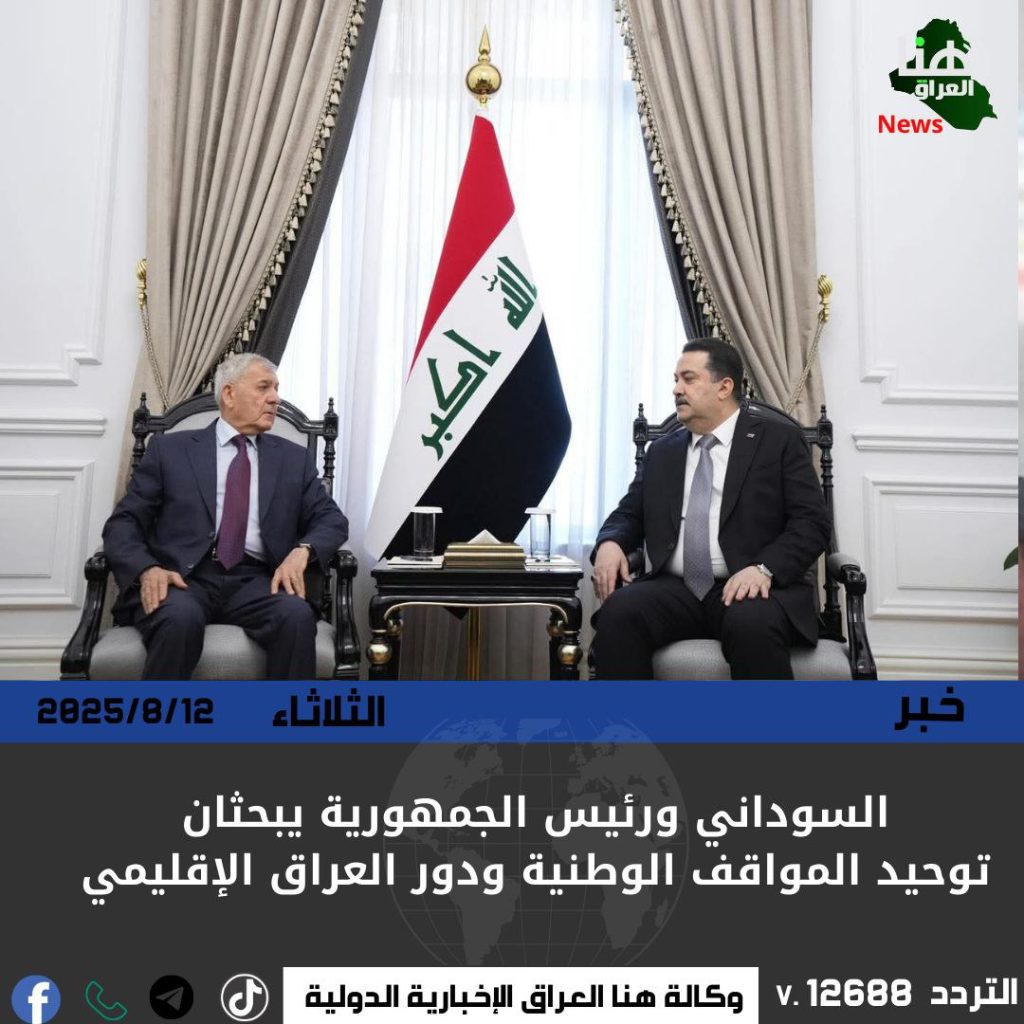 وناقش الجانبان القضايا والملفات الإقليمية ودور العراق في ترسيخ الأمن والاستقرار في المنطقة، إضافة إلى الاستعدادات للانتخابات النيابية المقبلة، وضرورة تهيئة الظروف التي تكفل نجاحها، بما يضمن مشاركة واسعة واختيار ممثلين يلبون تطلعات المواطنين نحو التنمية الشاملة.