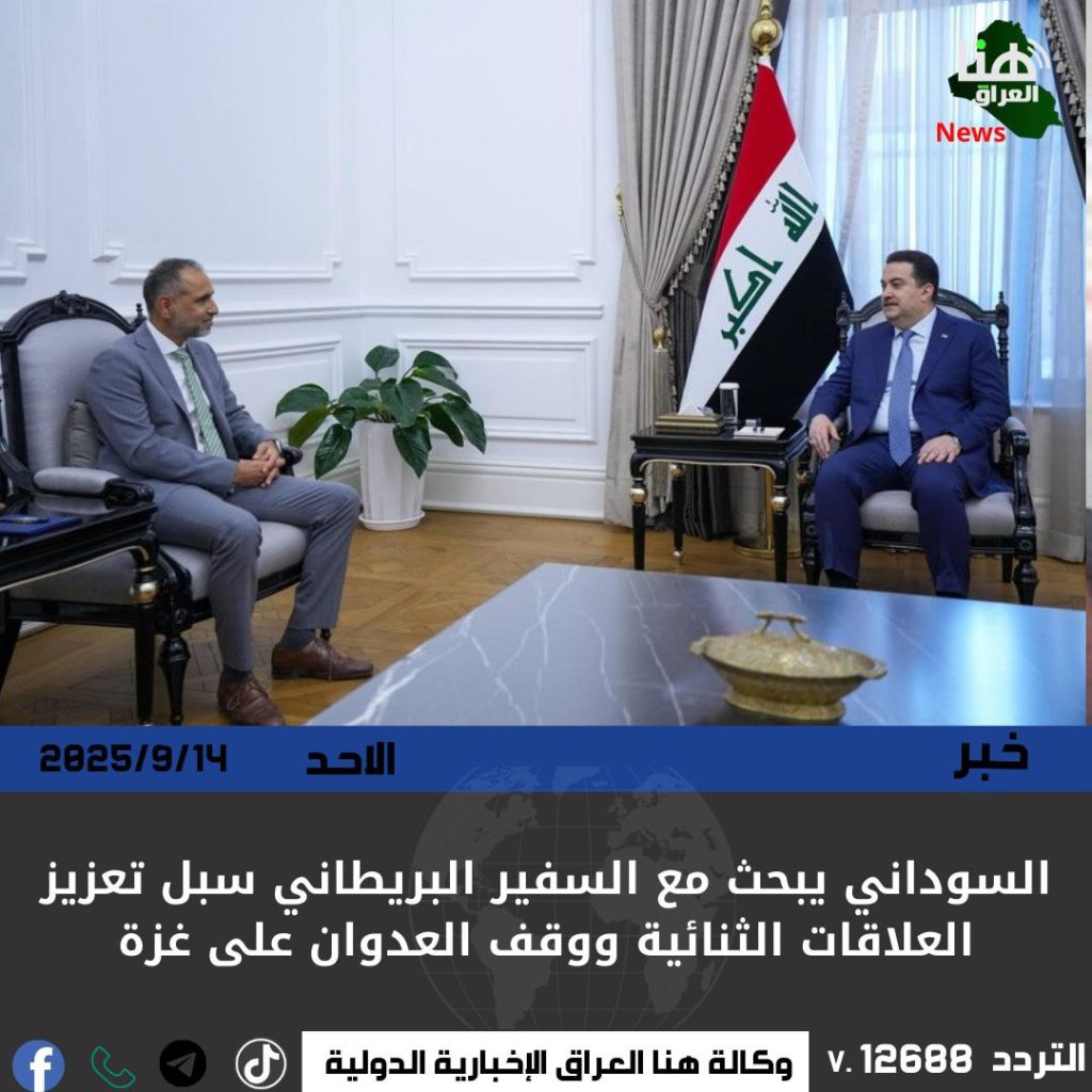 استقبل رئيس مجلس الوزراء محمد شياع السوداني، السفير البريطاني لدى العراق، حيث جرى بحث العلاقات الثنائية بين البلدين وآفاق تعزيزها في مختلف القطاعات.