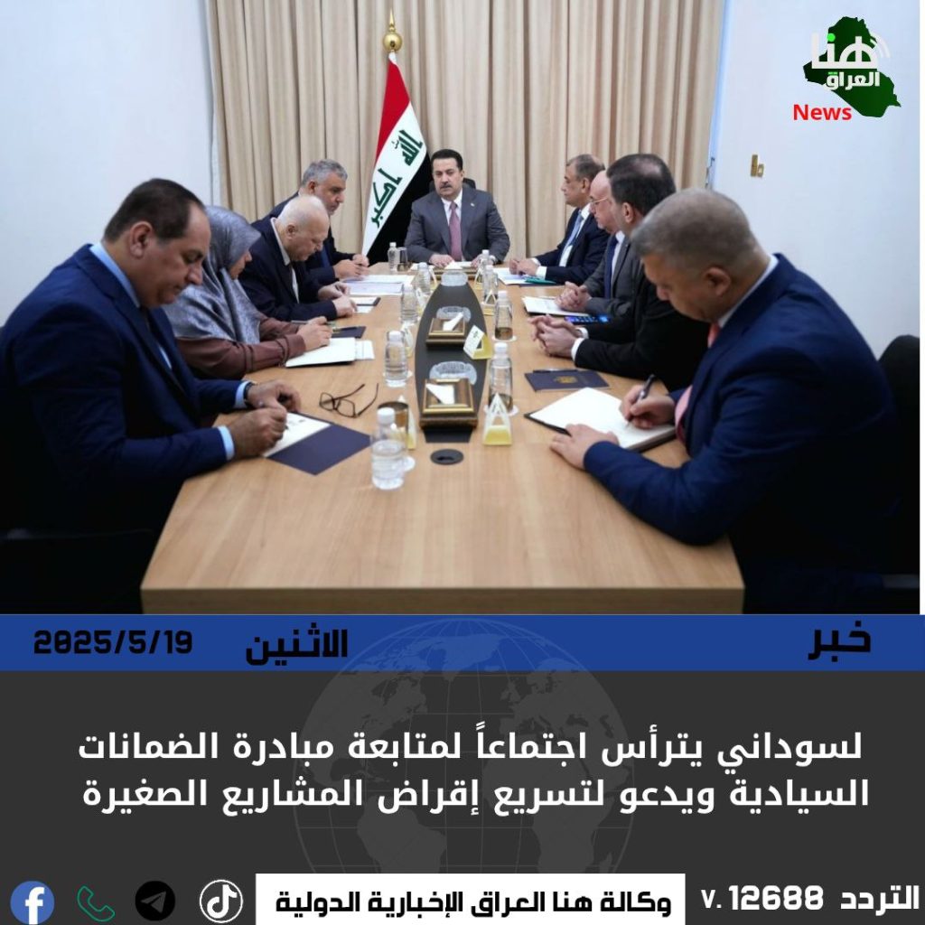 ترأس رئيس مجلس الوزراء، محمد شياع السوداني، اجتماعاً موسعاً خُصص لمتابعة مبادرة تمويل مشاريع القطاع الخاص ضمن برنامج الضمانات السيادية، مؤكداً أهمية اعتماد منهاج الإصلاح الاقتصادي في تطوير القطاع الخاص وتحفيز النمو.