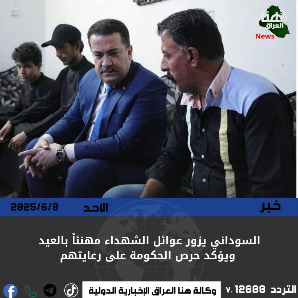 وخلال الزيارة، استمع السوداني إلى مطالب العوائل واطلع على أوضاعهم المعيشية، في إطار سياسة الحكومة الداعمة للشرائح المتضررة والوفاء لتضحيات الشهداء وعوائلهم.