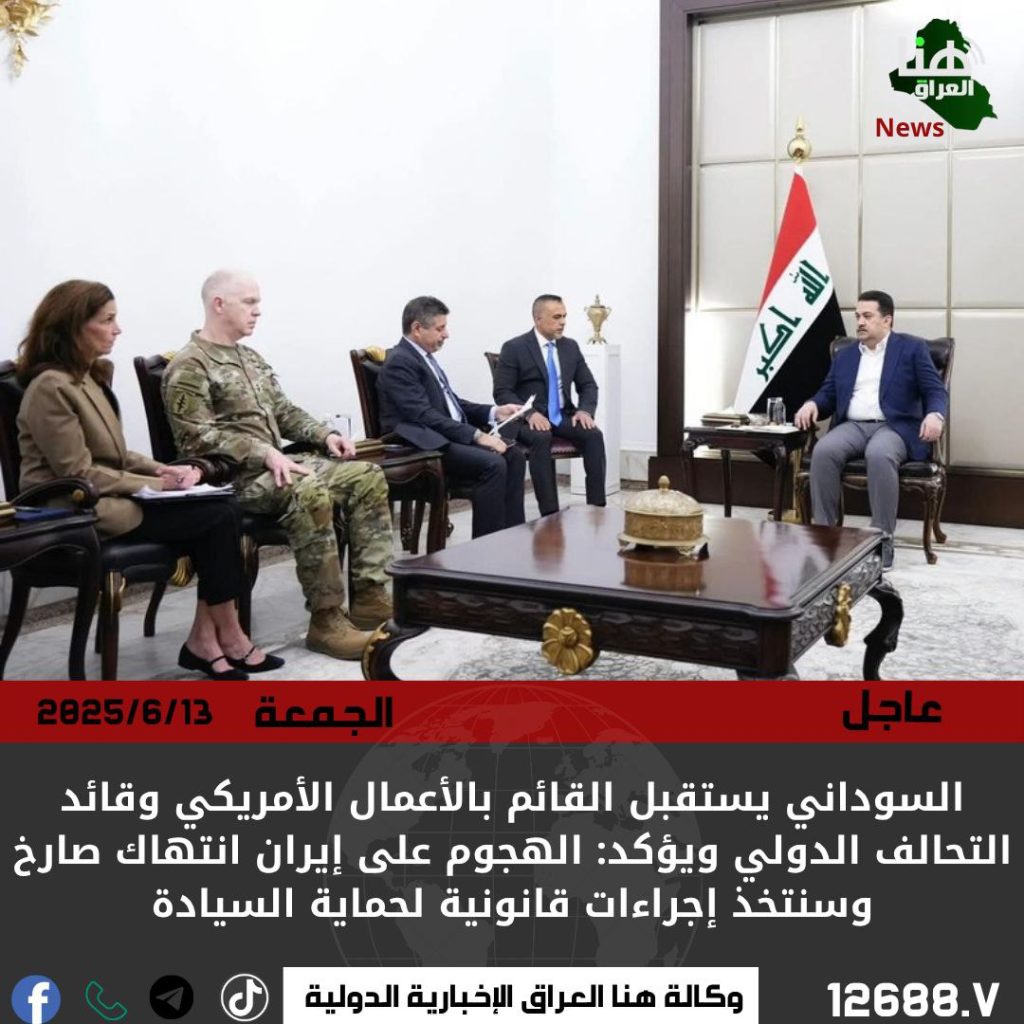 وأكد السوداني خلال اللقاء، الموقف الثابت والحاسم للعراق بأن “ما حصل ضد إيران يمثل انتهاكاً صارخاً للقانون الدولي وعملاً عدوانياً يهدد الأمن الإقليمي والدولي ويقوض أسس النظام العالمي القائم”.