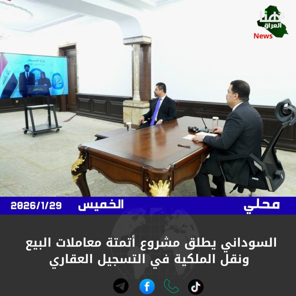 أطلق رئيس مجلس الوزراء محمد شياع السوداني مشروع أتمتة معاملات البيع ونقل الملكية في دائرة التسجيل العقاري، في خطوة تهدف إلى تبسيط الإجراءات وتقليل الروتين الإداري، والحد من تأخير إنجاز المعاملات، فضلاً عن تقليص ظاهرة المعقبين.