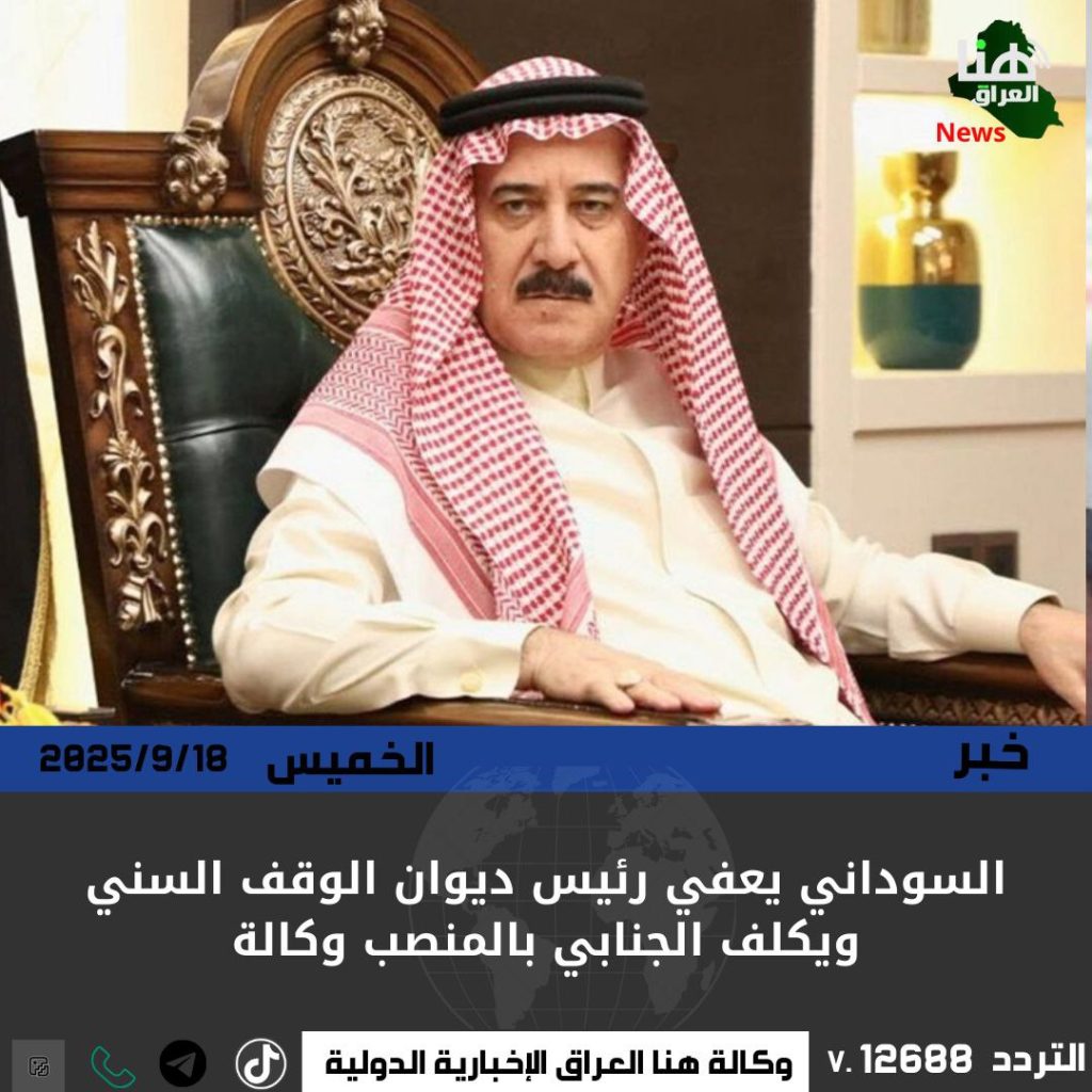 وكلف السوداني، عامر شاكر الجنابي، بإدارة ديوان الوقف السني وكالة لمدة ستة أشهر، موجهاً إياه بالعمل على تعزيز الخطاب المعتدل ونبذ التطرف، وإبعاد هذه المؤسسة الدينية المهمة عن أي استثمار سياسي أو انتخابي، بما يعزز مكانتها ودورها في المجتمع.
