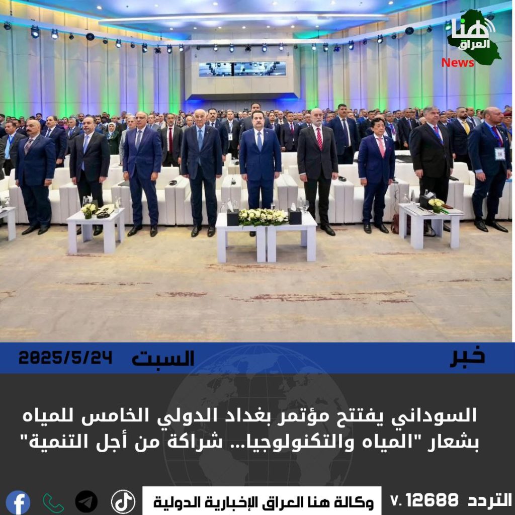 رعى رئيس مجلس الوزراء محمد شياع السوداني، اليوم السبت، انطلاق أعمال مؤتمر بغداد الدولي الخامس للمياه، الذي يُعقد في العاصمة بغداد تحت شعار: “المياه والتكنولوجيا… شراكة من أجل التنمية”.