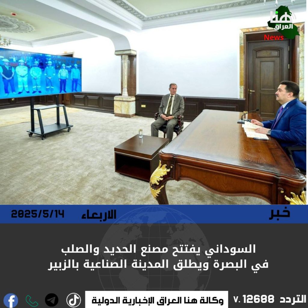 افتتح رئيس مجلس الوزراء محمد شياع السوداني عبر دائرة تلفزيونية مصنع الصلب التابع للشركة العامة للحديد والصلب في محافظة البصرة، بطاقة إنتاجية تبلغ 600 ألف طن سنوياً.