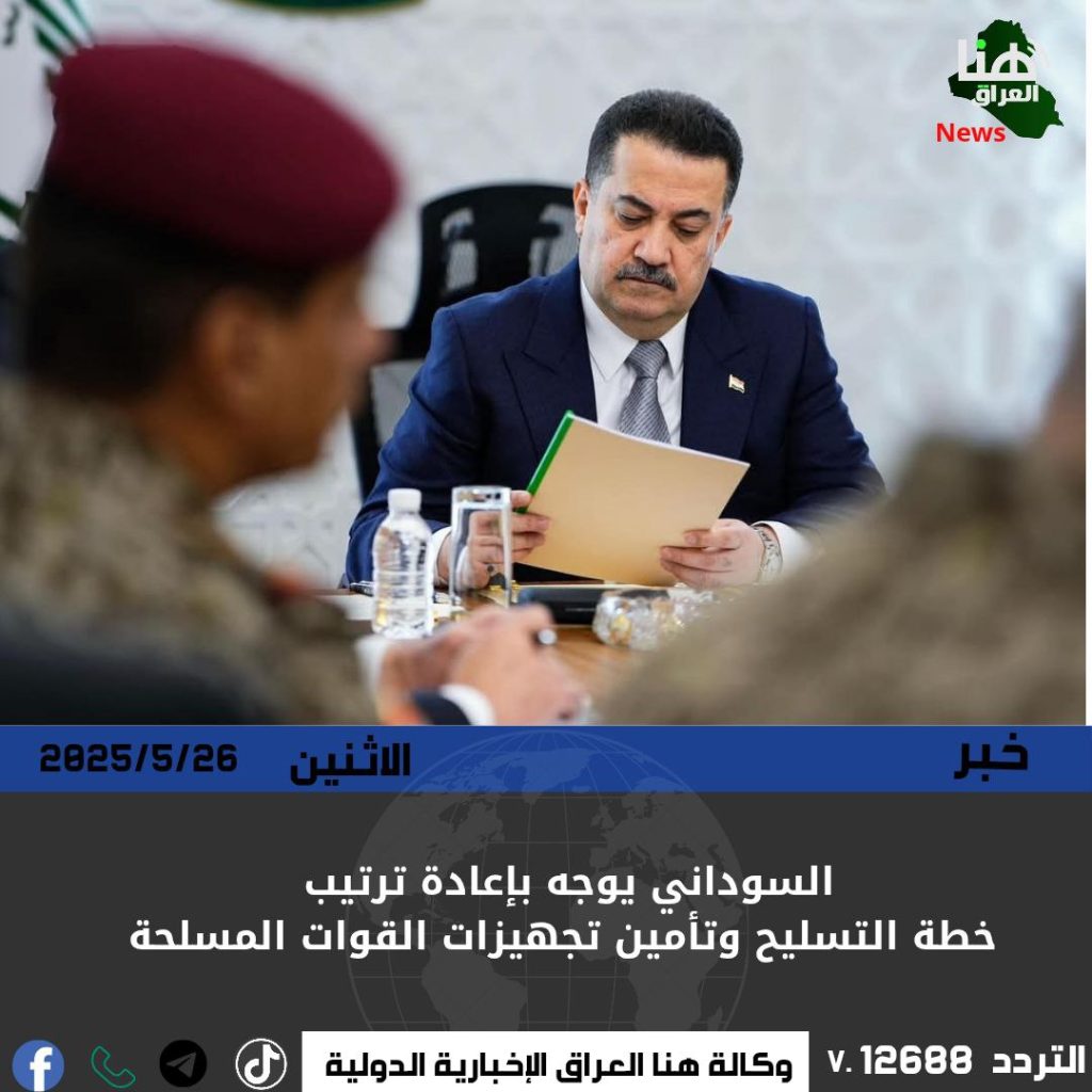 وجه رئيس مجلس الوزراء محمد شياع السوداني، اليوم الاثنين، بإعادة ترتيب خطة تسليح القوات المسلحة وفق أولويات المرحلة، لضمان تجهيز جميع الصنوف العسكرية بما يعزز من قدراتها الدفاعية.