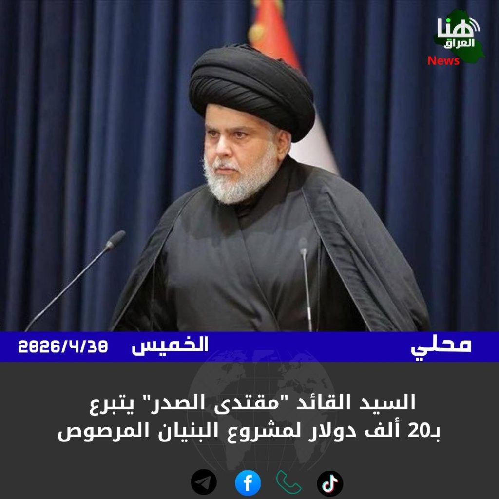الرئيسية/محلي/السيد القائد “مقتدى الصدر” يتبرع بـ20 ألف دولار لمشروع البنيان المرصوص محلي السيد القائد “مقتدى الصدر” يتبرع بـ20 ألف دولار لمشروع البنيان المرصوص شاركها فيسبوك X لينكدإن Tumblr بينتيريست Reddit VKontakte Odnoklassniki Pocket مشاركة عبر البريد طباعة