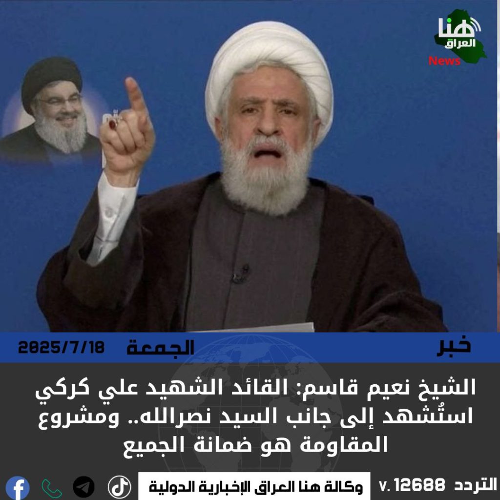 الأمين العام لحزب الله، الشيخ نعيم قاسم، أكد خلال كلمة تأبينية أن اختيار هذا اليوم لتأبين الشهيد القائد علي كركي جاء لأنه “استُشهد مع السيد نصرالله”، مشدداً على رمزية المناسبة.