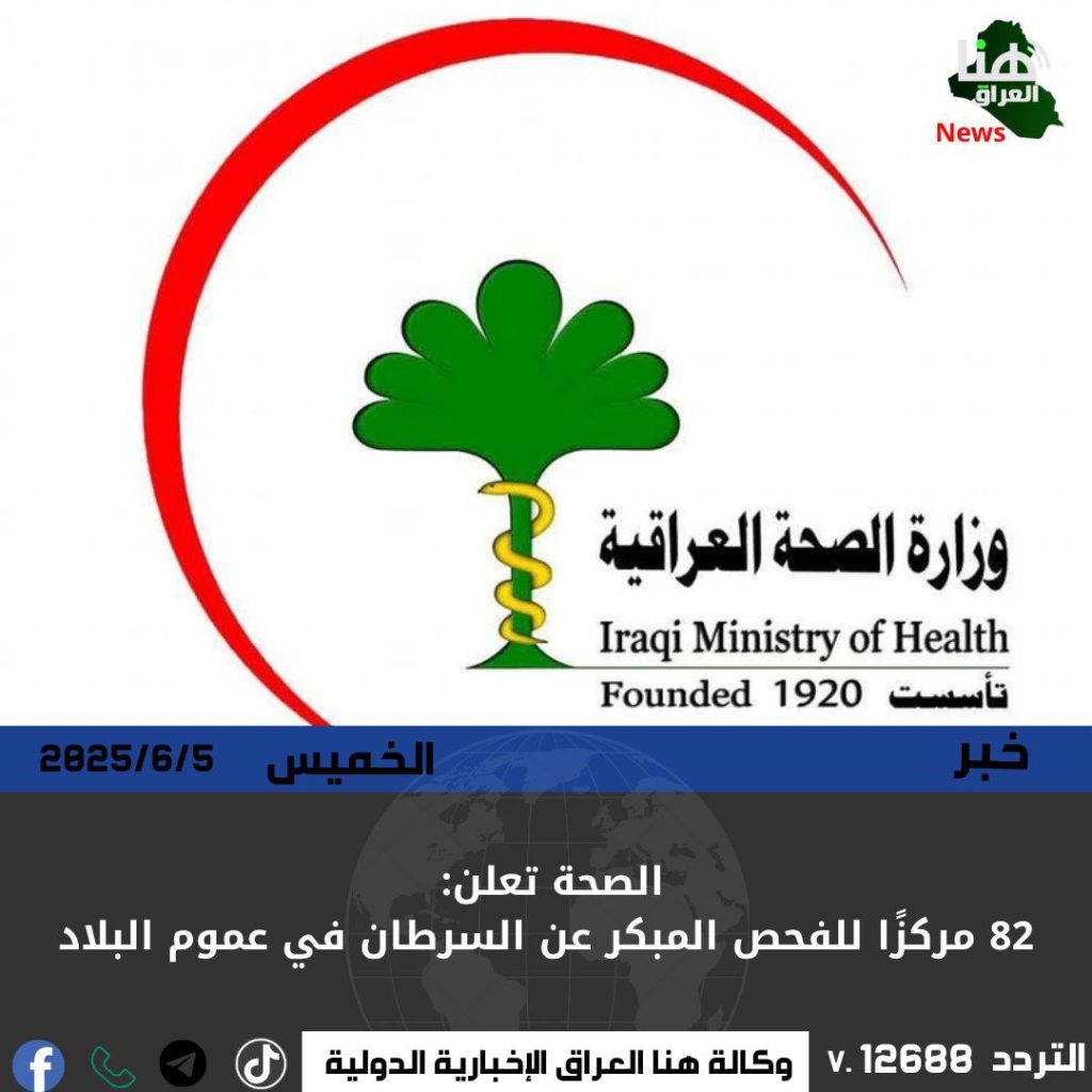 أعلنت وزارة الصحة، اليوم الخميس، عن وجود 82 مركزًا للفحص المبكر عن السرطان موزعة في مختلف محافظات العراق، مؤكدة أهمية التوعية للكشف المبكر عن هذا المرض وتقليل مخاطره.
