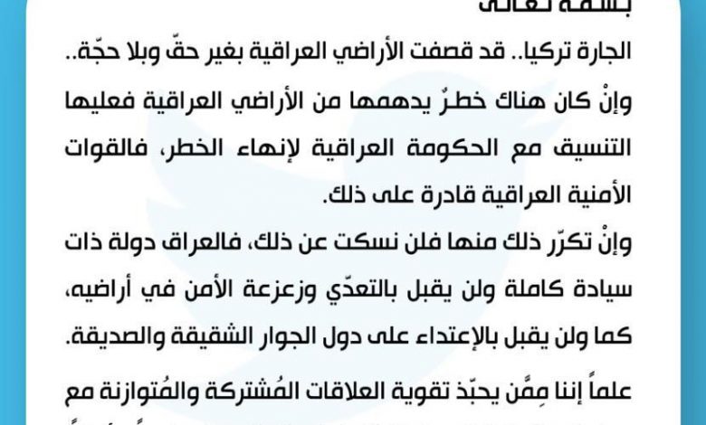وقال الصدر في تغريدة على “تويتر” ادناه نصها، إن هذا الامر يأتي “خصوصا بعد تبني ولي العهد السعودي السياسة الاعتدالية عندهم”.