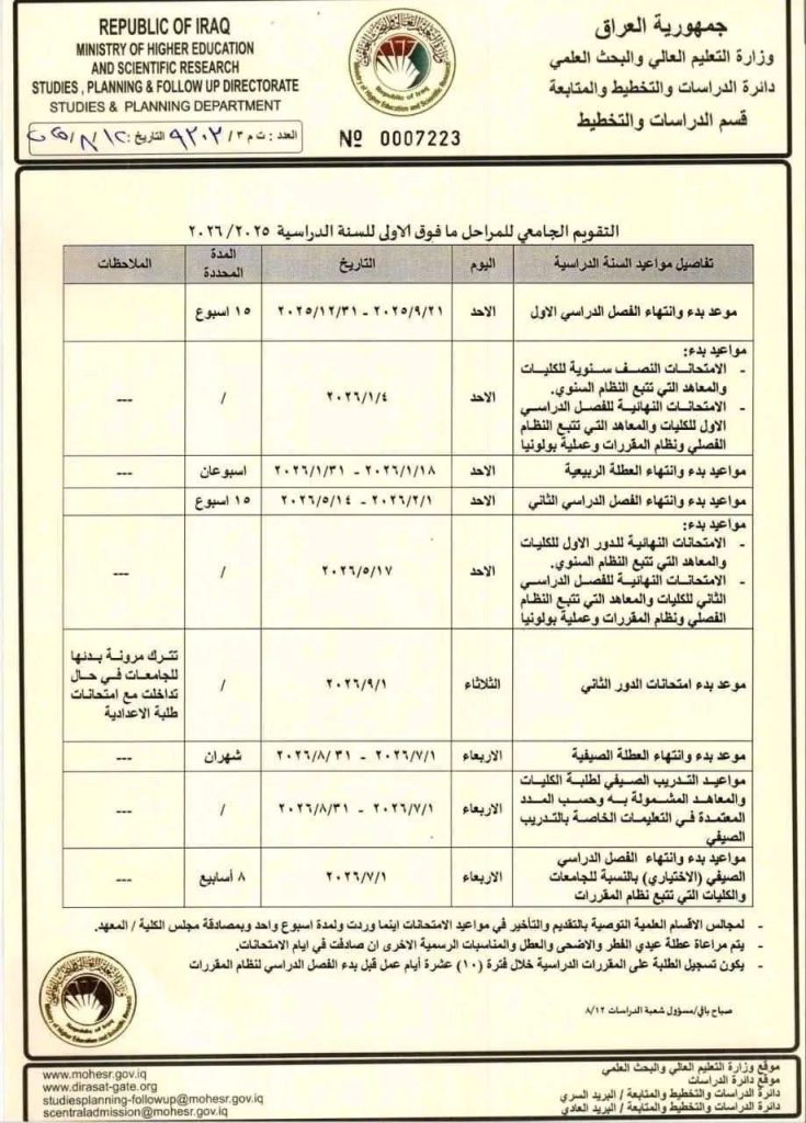العام الدراسي الجديد في الجامعات العراقية يبدأ في 21 أيلول المقبل