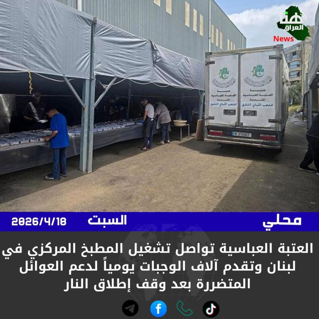 أعلنت العتبة العباسية المقدسة استمرار عمل المطبخ المركزي التابع لها في لبنان، رغم إعلان وقف إطلاق النار، مؤكدة مواصلة تقديم الخدمات الإنسانية لآلاف المستفيدين يومياً.