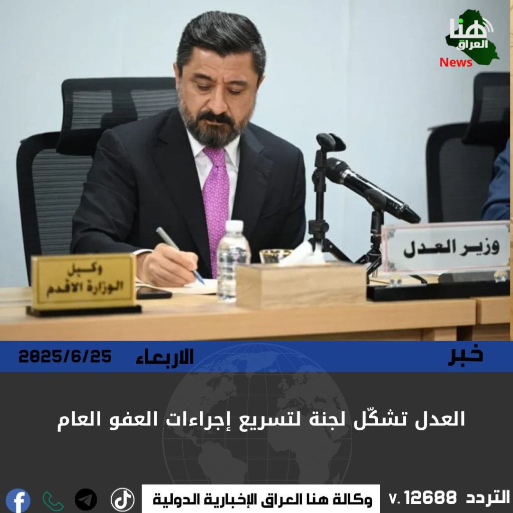 وجّهت وزارة العدل بتشكيل لجنة قانونية ضمن دائرة الإصلاح، لتسريع إطلاق سراح المشمولين بالعفو العام، من خلال اعتماد غرفة عمليات إلكترونية تربط أقسام الاستقبال والسجون كافة.