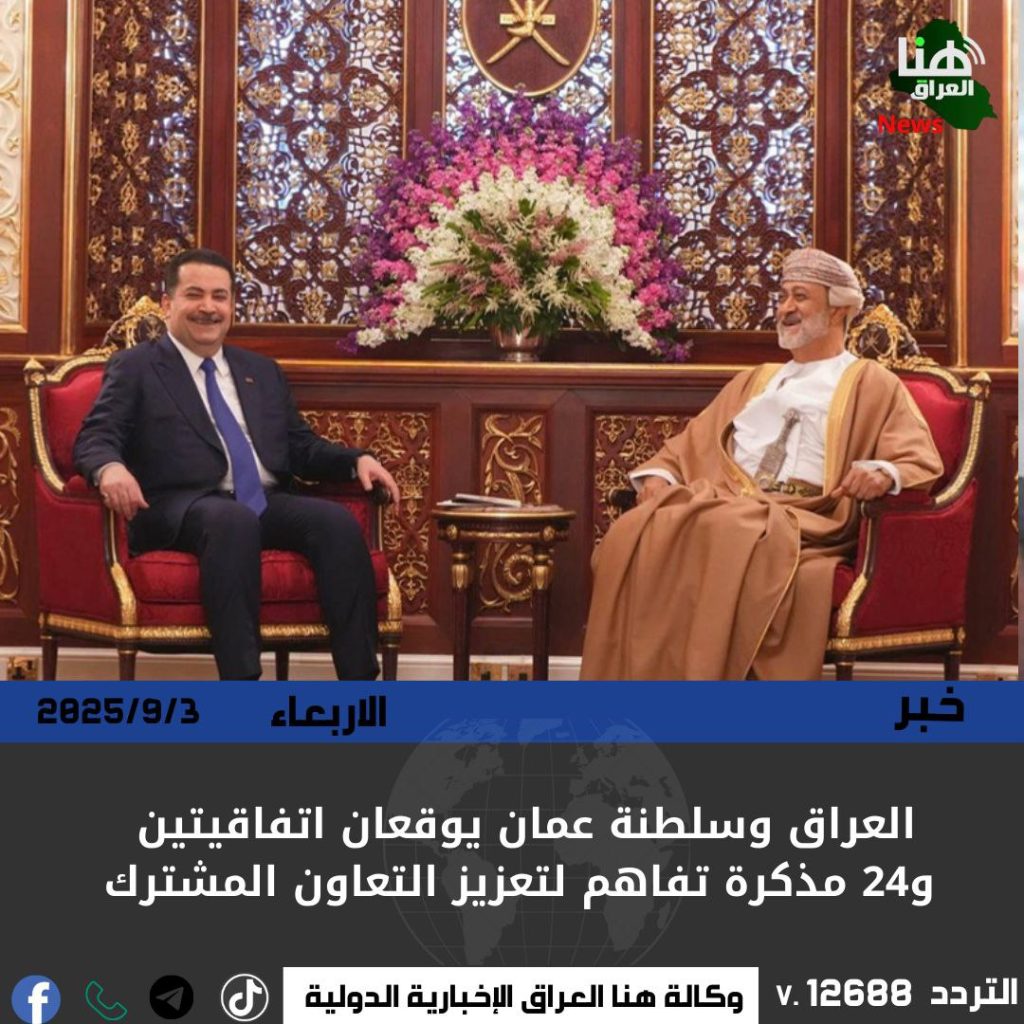 العراق وسلطنة عمان يوقعان اتفاقيتين و24 مذكرة تفاهم لتعزيز التعاون المشترك