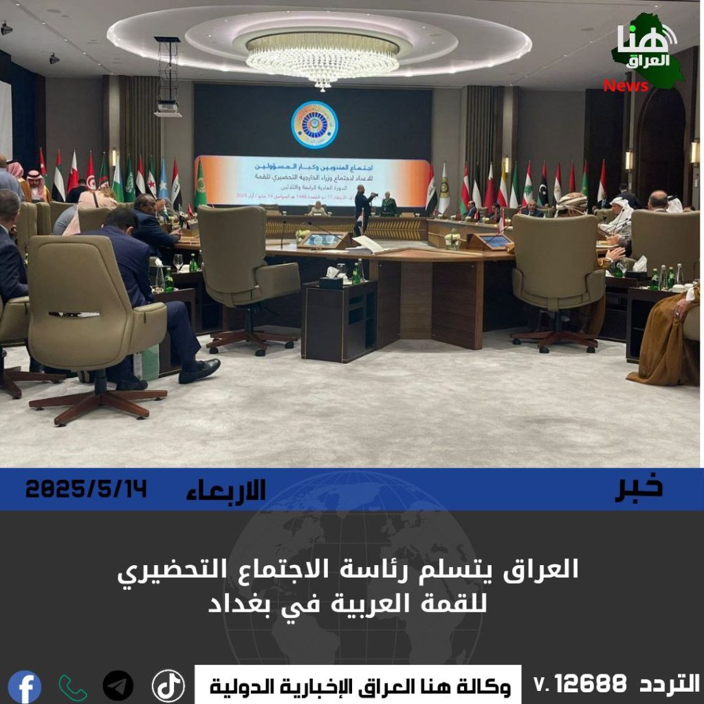 تسلّم العراق رئاسة اجتماع المندوبين وكبار المسؤولين في إطار التحضيرات لاجتماع وزراء الخارجية للقمة العربية الرابعة والثلاثين، التي تحتضنها العاصمة بغداد.