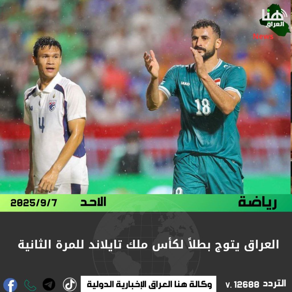 تُوّج المنتخب العراقي بكأس ملك تايلاند لكرة القدم، عقب فوزه على نظيره التايلاندي بهدف دون رد، في المباراة النهائية التي جمعت الفريقين مساء اليوم.