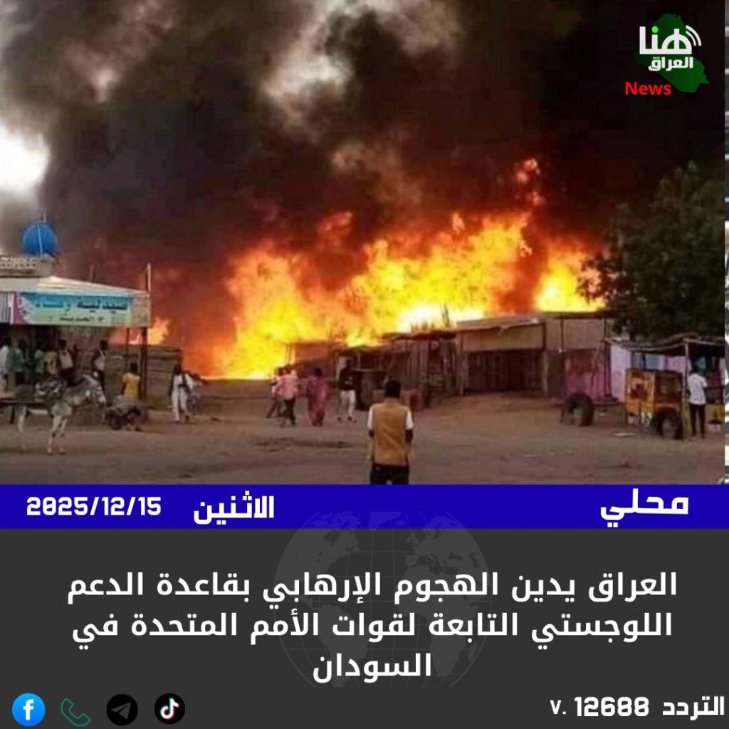 الرئيسية/دولي/العراق يدين الهجوم الإرهابي بقاعدة الدعم اللوجستي التابعة لقوات الأمم المتحدة في السودان دوليسياسةمحلي العراق يدين الهجوم الإرهابي بقاعدة الدعم اللوجستي التابعة لقوات الأمم المتحدة في السودان شاركها فيسبوك X لينكدإن Tumblr بينتيريست Reddit VKontakte Odnoklassniki Pocket مشاركة عبر البريد طباعة