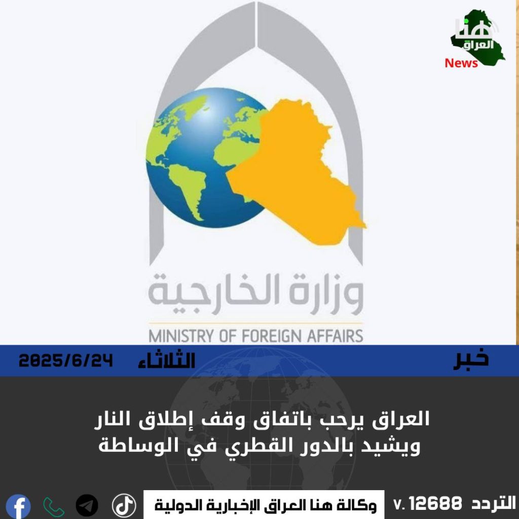 وفي السياق ذاته، ثمّنت الخارجية العراقية الجهود الدبلوماسية التي بذلتها دولة قطر الشقيقة، ودورها الفاعل في إنجاح الوساطة والتوصل إلى اتفاق وقف إطلاق النار، معتبرة ذلك انعكاساً لدورها المحوري في دعم الاستقرار الإقليمي.