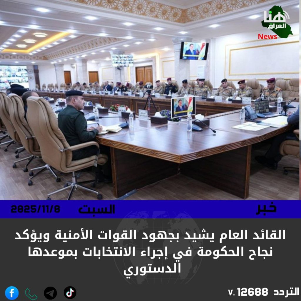 وشدد القائد العام على “ضرورة الجاهزية للرد السريع والمباشر على أي محاولات تضليل أو تشكيك بالعملية الانتخابية في وسائل الإعلام ومواقع التواصل الاجتماعي”، داعياً إلى “تعزيز التنسيق المهني بين الأجهزة الأمنية والمفوضية العليا للانتخابات لضمان نجاح العملية الانتخابية وتنفيذ الواجبات وفق السياقات المهنية بعيداً عن أي انتماءات سياسية أو ضغوطات”.