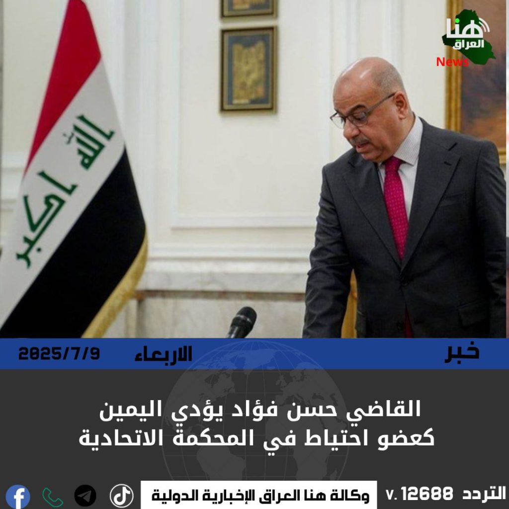 أدى القاضي حسن فؤاد منعم الخفاجي، اليمين الدستورية أمام رئيس الجمهورية عبد اللطيف جمال رشيد في قصر بغداد، وذلك بصفته عضوًا احتياطياً في المحكمة الاتحادية العليا، ضمن إجراءات تعزيز السلطة القضائية العليا في البلاد.