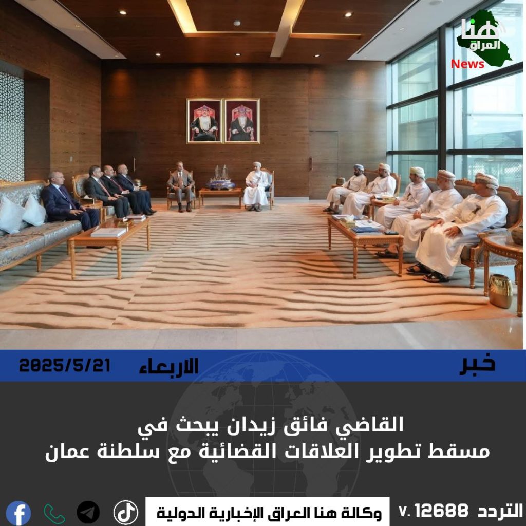التقى رئيس مجلس القضاء الأعلى، القاضي فائق زيدان، بنائب رئيس المجلس الأعلى للقضاء في سلطنة عمان، وبحث الطرفان سبل تعزيز العلاقات القضائية والقانونية بين البلدين. وجرى خلال اللقاء التأكيد على أهمية تبادل الخبرات القانونية بما يخدم العدالة في البلدين الشقيقين.