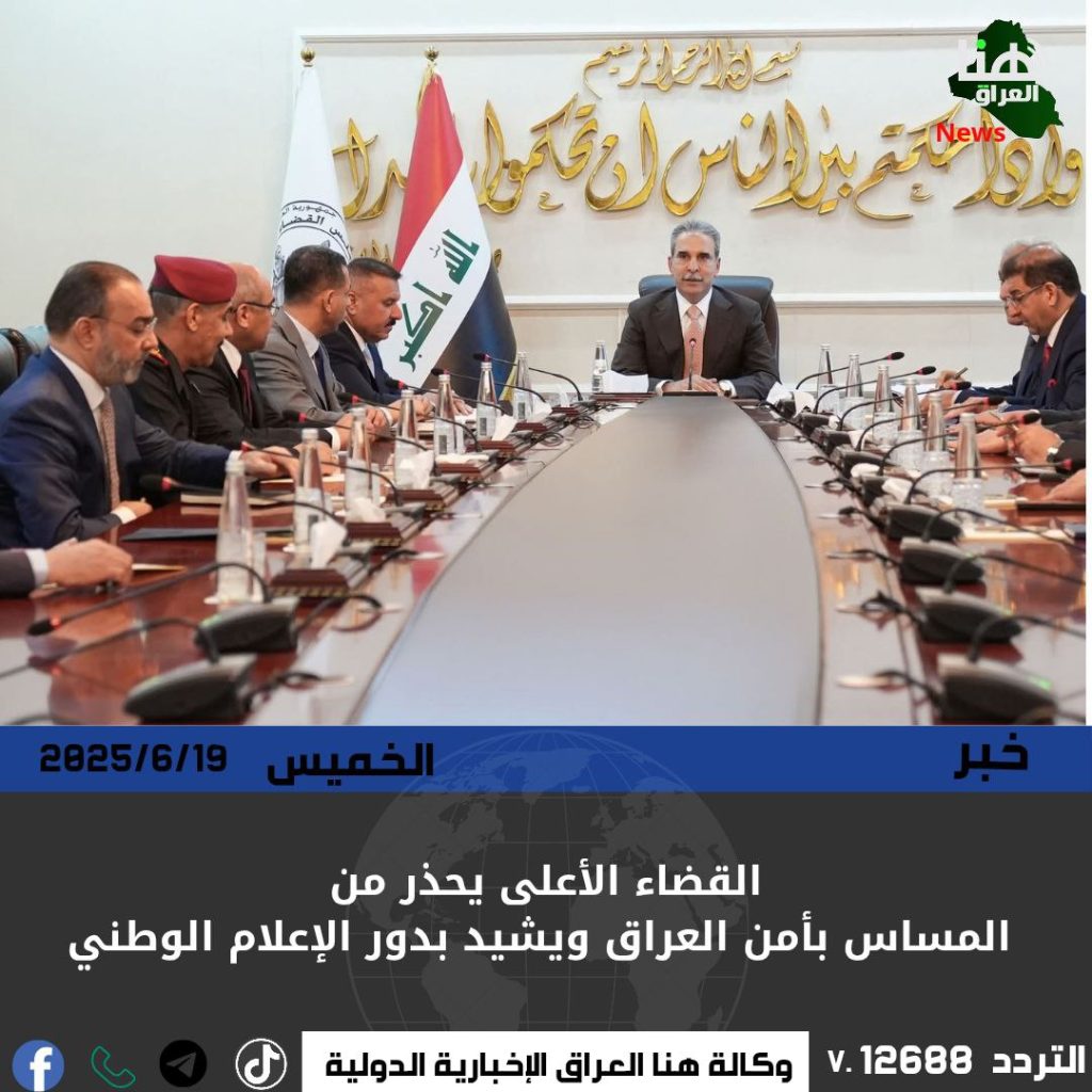 عقد مجلس القضاء الأعلى اجتماعًا موسعًا ضمّ وزير الداخلية وعددًا من رؤساء الأجهزة الأمنية والمؤسسات الإعلامية، لمناقشة تداعيات الوضع الإقليمي بعد العدوان الصهيوني الأخير، وسبل تعزيز الأمن الداخلي.