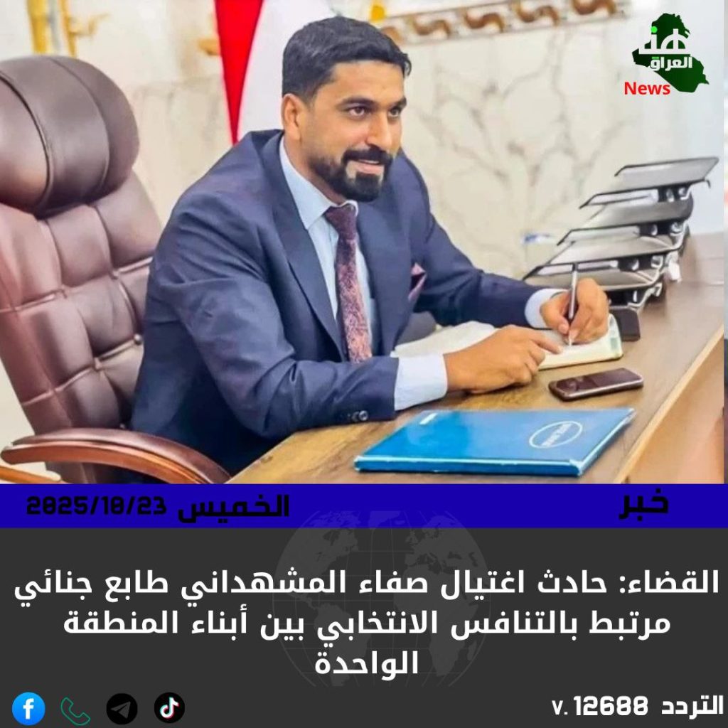 الرئيسية/امن/القضاء: حادث اغتيال صفاء المشهداني طابع جنائي مرتبط بالتنافس الانتخابي بين أبناء المنطقة الواحدة امنسياسةمحلي القضاء: حادث اغتيال صفاء المشهداني طابع جنائي مرتبط بالتنافس الانتخابي بين أبناء المنطقة الواحدة شاركها فيسبوك X لينكدإن Tumblr بينتيريست Reddit VKontakte Odnoklassniki Pocket مشاركة عبر البريد طباعة