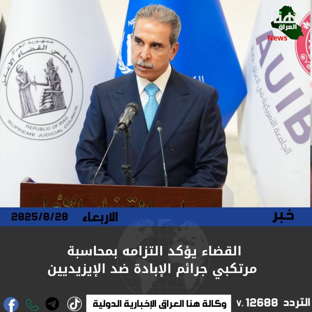 وشدد رئيس مجلس القضاء الأعلى على أن محاسبة كل من تلطخت يداه بدماء الأبرياء واجب لا تهاون فيه، مؤكداً أن “القانون لا يعرف استثناءً، والعدالة لا تقبل تهاوناً، ولا مكان على أرض العراق لمجرم يفلت من العقاب”.
