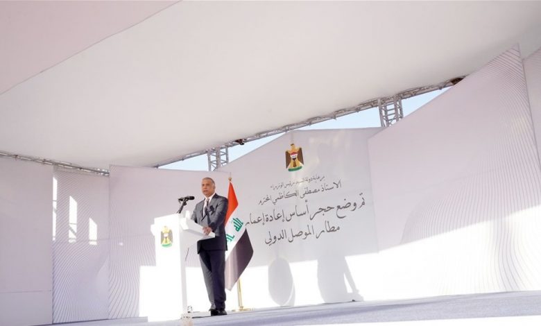 وقال الكاظمي خلال احتفالية وضع الحجر الأساس لمشروع إعادة تأهيل مطار الموصل الدولي، “اليوم نحن في محافظة نينوى بعد أن وعدتكم في زيارتي الأخيرة بأننا نعمل على وضع خطة محكمة، وتذليل الموانع والعقبات وسنَقدِم إليكم ثانية لنضع حجر الأساس لإعادة تأهيل هذا المطار، وها هنا اليوم عندكم خلال شهر”، لافتا الى إن “مشروع مطار الموصل الدولي هو مشروع استراتيجي ومهم لأبنائنا في المحافظة، ونضع حجر الأساس اليوم”.