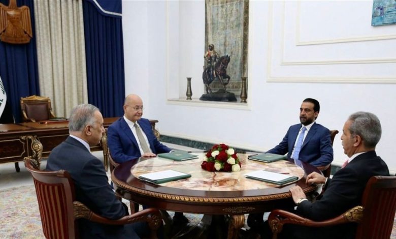 وذكرت رئاسة الجمهورية في بيان ورد لوكالة هنا العراق الاخبارية أن “رئيس الجمهورية برهم صالح، أستضاف أجتماعاً ضم رئيس مجلس الوزراء مصطفى الكاظمي، ورئيس مجلس النواب محمد الحلبوسي، ورئيس مجلس القضاء الأعلى القاضي فائق زيدان، لبحث المستجدات على الساحة الوطنية”.