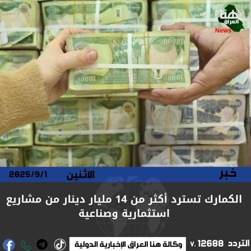 أعلنت الهيئة العامة للكمارك عن استرداد أكثر من (14) مليار دينار عراقي بعد مراجعة دقيقة للإعفاءات الكمركية الممنوحة لعدد من الشركات والمشاريع الاستثمارية والصناعية.