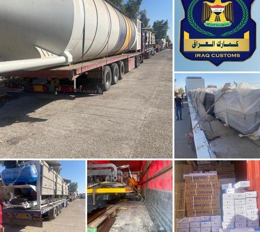 الكمارك …ضبط (١٢) شاحنة مخالفة عند مداخل مدينة بغداد.
