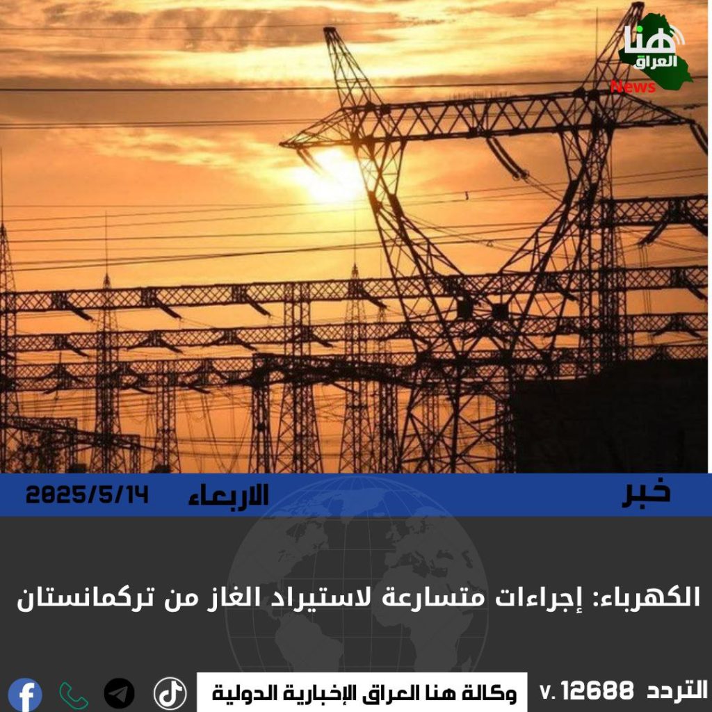 أعلنت وزارة الكهرباء أن العمل جارٍ لتسريع فتح الاعتمادات المالية اللازمة لاستيراد الغاز التركمانستاني، لتأمين نصف حاجة المحطات الكهربائية التي تعتمد حالياً على الغاز الإيراني.