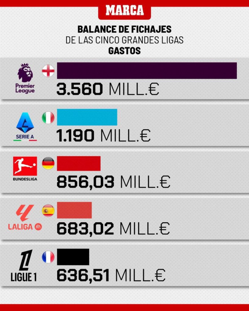 الرئيسية/رياضة/الماركا : إنفاق الدوريات الأوروبية الخمسة الكبرى في سوق الانتقالات الصيفية. رياضة الماركا : إنفاق الدوريات الأوروبية الخمسة الكبرى في سوق الانتقالات الصيفية. شاركها فيسبوك X لينكدإن Tumblr بينتيريست Reddit VKontakte Odnoklassniki Pocket مشاركة عبر البريد طباعة