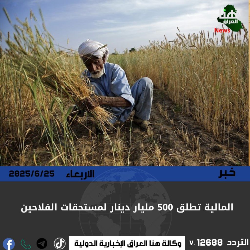 باشرت وزارة المالية تمويل الدفعة الثالثة من مستحقات الفلاحين عن محصول الحنطة لعام 2025، بمبلغ قدره 500 مليار دينار، وذلك استنادًا إلى البيانات المُثبتة أصوليًا من قبل وزارة التجارة.